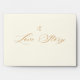 Modern elegant wedding envelope with gold dust on with a gold ink pour effect (the gold is a digital effect, not real foil!) and modern calligraphy. Classy and elegant, simple and modern invitation.