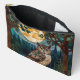 Immerse yourself in the enchanting allure of this elegant bohemian owl stain glass artwork, where nature's elegance meets timeless artistry. Set against a lush forest backdrop, this exquisite piece captures the serene beauty of a pristine woodland landscape, rich with intricate details of the trees against midnight blue moon lite sky,