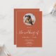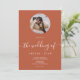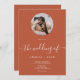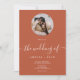 Simple elegant boho terracotta white photo script wedding invitation with this classic and elegant calligraphy the wedding of Script in terracotta earth tone and white. Add you couple's photo in a circle mask.