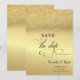 Ce beau design présente un ombre à paillettes dorées sur un fond doré. Joli save the date qui peut être personnalisé avec votre nom. Sélectionnez le bouton "personnaliser" pour changer le style de police, la couleur et la taille.