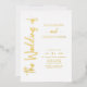 This unique Elegant Bold Script Gold & White Foil Formal Wedding Invitation features beautiful vertical script calligraphy and modern typography, and is fully customizable with your names, wedding details and a QR code for your wedding website. The classic black and white theme is perfect for weddings in any season. Please note that the wedding date and location details will print in gold ink, not gold foil.