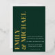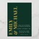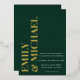A simple minimal wedding invitation featuring elegant bold typography gold foil names, emerald green colour and contemporary design.