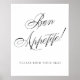 This romantic and timeless "Bon Appetite: Please find your seat" signage adds a simple elegance to any classic wedding reception, shower or party motif. The luxurious script template features a whimsical and beautiful modern black calligraphy lettering on white background. The lovely font with a customizable background colour makes it easy to fit any theme. For other colours or matching products, please visit the JustFharryn Zazzle store, or contact the designer, c/o Fharryn@yahoo.com All rights reserved. #zazzlemade