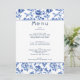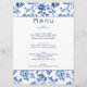 Elegant botanical delftware blue and white menu