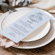 This elegant wedding menu design features a light blue background with a hand drawn coneflower illustration and vintage inspired typography in dusty blue tones. The back of the card is the same colour. This design would be a fabulous choice for a wedding in any season. See the collection for coordinating items!