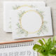 Wedding invitation enevelopes, to match the 'botanical greenery wedding collection'. Featuring a delicate gold wreath framed with watercolor foliage.