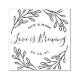 Custom-designed wedding favour rubber stamp featuring modern elegant hand-drawn leaves and branches design. Personalize with bride and groom/couple's names and wedding date for a touch of style on wedding coffee grounds/beans or tea favours and gifts.