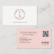 Elegant Botanical Monogram Crest Pink Green QRCODE Business Card