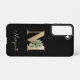 Elegant black phone case features a gold botanical monogram in the centre.