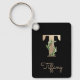 Elegant Botanical Monogram Gold Letter T Keychain