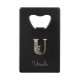 Elegant Botanical Monogram Gold Letter U Credit Card Bottle Opener