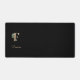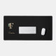 Elegant black desk mat features a gold botanical monogram in the centre.