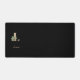 Elegant black desk mat features a gold botanical monogram in the centre.