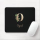 Elegant black mouse pad features a gold botanical monogram in the centre.