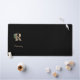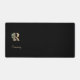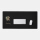 Elegant black desk mat features a gold botanical monogram in the centre.