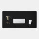 Elegant black desk mat features a gold botanical monogram in the centre.