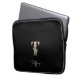 Elegant black laptop sleeve features a gold botanical monogram in the centre.