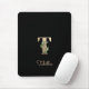 Elegant black mouse pad features a gold botanical monogram in the centre.
