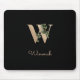 Elegant black mouse pad features a gold botanical monogram in the centre.