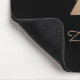 Elegant black mouse pad features a gold botanical monogram in the centre.