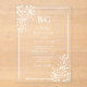 An elegant hand drawn botanical border with wedding couples monogram initials. A stylish clear acrylic wedding invitation design featuring floral illustrations, monogram and elegant script and italic calligraphy typography. A unique clear acrylic wedding invitation design that can be customized to your details.