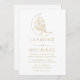 Elegant Botanical Moon and Stars Gold Wedding Invitation
