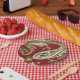 An Ethan Harper original that features tan foliage on a red background. This elegant botanical motif would be a great gift for anyone who enjoys bold colours!