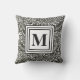 Elegant Botanical Pattern Black and White Monogram Outdoor Pillow