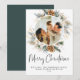 Send warm holiday wishes with this Elegant Christmas Holiday Card! Featuring a custom family photo and beautifully designed watercolor pine tree branches, it blends modern elegance with a touch of botanical charm. Personalize it with your own message for a festive, heartfelt touch. Perfect for spreading Christmas vibes to loved ones near and far, this customizable card captures the spirit of the season with greenery and floral details.