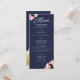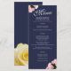 Elégant bouquet rose Mariage floral menu. Cette modèle à la carte moderne et fleurie mariage dispose d'un beau bouquet de roses roses. L'arrière - plan est bleu marine foncé de minuit. Le texte est dans un script moderne blanc. Vous pouvez facilement customiser tout le texte - personnalisez-le avec le nom de la mariée et du marié, la date du mariage et votre menu mariage. Le dos est de couleur bleu foncé.