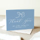 Express your gratitude in style with this sophisticated wedding thank you card showcasing a hand-drawn white bow and “Thank You” in elegant white calligraphy set against a soft blue background. Customize the front with your names and wedding date for a lasting memento of your celebration. The inside of this folded card offers room for your personal note of gratitude, allowing you to share heartfelt thanks with loved ones. With its chic blue and white palette, this design complements classic, coastal, and modern wedding stationery suites.