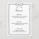 Set the tone for your wedding dinner with this elegant menu featuring a delicate hand-drawn bow and scalloped border. Designed for classic, minimalist, or French-inspired weddings, this chic template allows you to personalize your menu details with ease. Perfect for bridal showers, rehearsal dinners, and upscale receptions, this timeless design adds a touch of effortless sophistication to any tablescape.