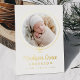 Introducing our Elegant Gold Foil Bow Photo Birth Announcement, a stunning way to celebrate your little one’s arrival. The baby’s photo is beautifully encircled by a gold foil ribbon tied in a bow on a crisp white background. Your baby's first and middle name appear in elegant calligraphy, with the last name and birth stats below. The back of the announcement offers space for an extra photo and a personal message. This luxurious, customizable keepsake is perfect for sharing your joy with family and friends!