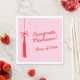 Add a stylish touch to your graduation celebration with these elegant and customizable paper napkins! Featuring a hand-drawn tassel and a chic coquette-style bow, these napkins are both practical and decorative. The handwritten calligraphy-style font adds a personal and sophisticated flair, while the feminine pink and red colour palette creates a festive and charming look.