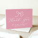 Express your appreciation in style with this chic wedding thank you card showcasing a hand-drawn white bow and “Thank You” in elegant calligraphy against a soft rose pink background. Customize the front with your names and wedding date for a lasting memento of your celebration. Inside, the folded card offers room for your personal note of thanks, allowing you to share genuine gratitude with family and friends. The romantic rose pink and white colour palette makes this design a beautiful choice for classic, feminine, or modern wedding stationery collections.