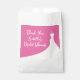 An elegant wedding dress on a fuchsia background accents this bridal shower gift bag. This is part of the Elegant Bridal Shower Collection in fuchsia. If additional coordinating items are needed just contact us at prettyfancyinvites@gmail.com with your request.