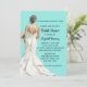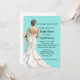 Modern yet elegant bridal shower invitation features a turquoise background reminiscent of unparalleled glamour with a beautiful bride in white.