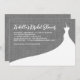 An elegant wedding dress accents this bridal shower invitation on an illustrated grey linen background. This invitation is shown on the matte paper; however, my favourite is the linen paper, which works beautifully with this design This invitation is part of the Elegant Bridal Shower Collection in grey linen. If additional coordinating items are needed, just contact us at prettyfancyinvites@gmail.com with your request.