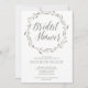Elegant bridal shower invitations with grey floral wreath and custom grey text printed on white background