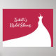 An elegant wedding dress accents this bridal shower poster on a viva magenta background. This is part of the Elegant Bridal Shower Collection in magenta. If additional coordinating items are needed just contact us at prettyfancyinvits@gmail.com with your request.