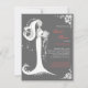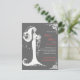 4.25" x 5.5" Elegant bride with flowers on dark grey background with white and red text. Elegant, fully customizable to use as invitation for bridal shower party.