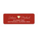 A personalized and elegant dark brick red return address label with the image of a sepia-gold heart between the bride and groom names... to add a special touch to your invites.