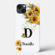 Personalized first name chic summer sunflowers yellow iphone case on white background, is a blend of charm and modern elegance, crafted to resonate with the feminine chic style. You can add your name or another name turning this charming accessory into a unique statement piece. It's a thoughtful gift for her.