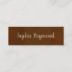 A simple, tasteful and professional brown profilecard with fields for name (script font style), phone number, and email