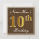 Elegant, Brown, Faux Gold 10th Birthday + Name Invitation