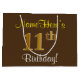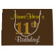 Elegant, Brown, Faux Gold 11th Birthday + Name Large Gift Bag
