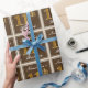 This simple and elegant wrapping paper design features a personalized message like "NameHere’s 11th Birthday" (with the "11th" having a faux/imitation gold-like colouring look) within a brown-coloured square area featuring a simple border outline. The name is in an elegant white-coloured script-like text, and can be customized. Wrapping paper like this could perhaps be used when wrapping birthday gifts for somebody who is celebrating their eleventh birthday. [~Z0000223]