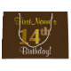 This simple, elegant birthday gift bag design features a personalized message like "FirstName’s 14th Birthday!" (with the "14th" having a faux/imitation gold-like colouring look) on a brown coloured background. The name is in script-like, yellow-coloured text, and can be customized. A personalised birthday gift bag like this could perhaps be used when giving a present or gift to somebody who is celebrating their fourteenth birthday. [~Z0000262]