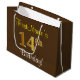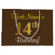 Elegant, Brown, Faux Gold 14th Birthday + Name Large Gift Bag