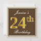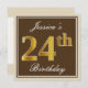 Elegant, Brown, Faux Gold 24th Birthday + Name Invitation